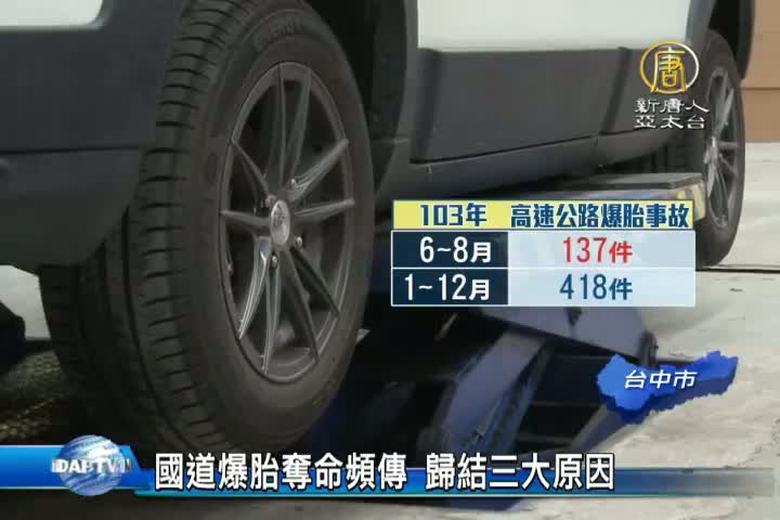 國道上爆胎常造成奪命車禍,專家說,造成爆胎主要原因,是天氣熱導致胎壓過高,胎紋不足和輪胎老舊造成,開車前檢查愛車是否符合規定,熟記爆胎SOP,才能確保安全。 //asset3.ntdtv.com.tw/public/uploads/assets/2015/09/23/2015-09-23-5602a270d4c25.mp4 爆胎|交通部|打滑|胎紋|台中2015-09-23 20:56:34