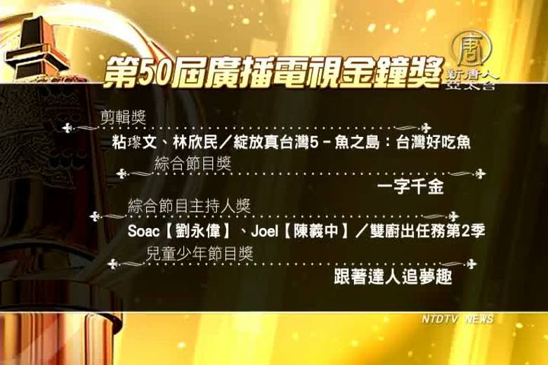 繼續帶您來看到金鐘獎頒獎的最新情況,現場節目精彩,感動不斷,今年金鐘獎特別貢獻獎頒發給高齡92歲的知名演藝人員常楓,以及78歲的知名製作人周遊,剪輯獎由《綻放真台灣5–魚之島:台灣好吃魚》、《一字千金》獲得綜合節目獎、《雙廚出任務第2季》獲得綜合節目主持人獎。 //asset1.ntdtv.com.tw/public/uploads/assets/2015/09/26/2015-09-26-56069597ee5fc.mp4 2015-09-26 20:57:05