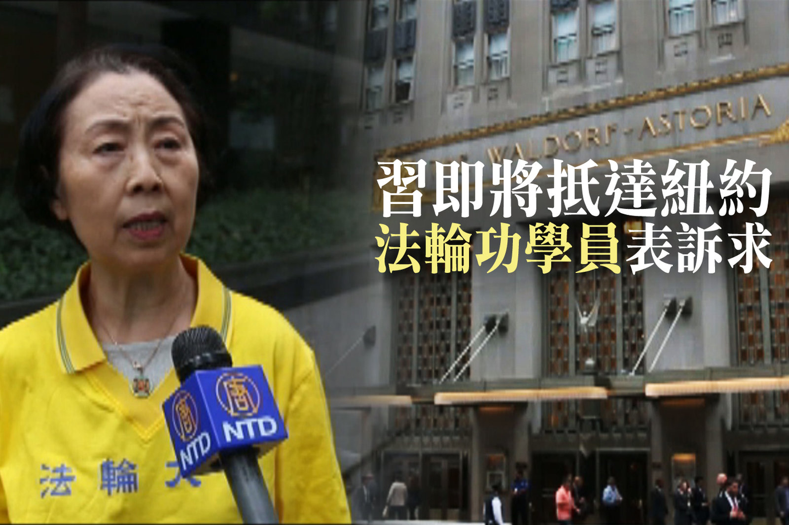 習即將抵達紐約 法輪功學員表訴求
