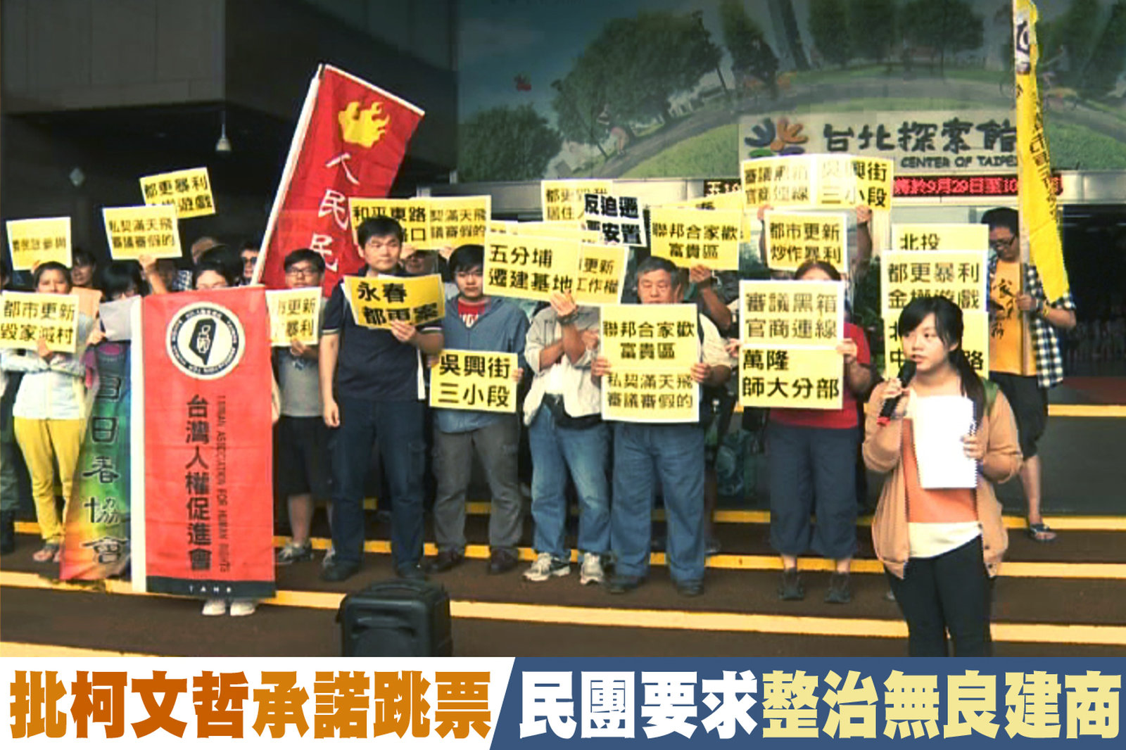 柯文哲選前承諾跳票 民團要追究強拆建商