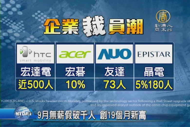 經濟不好,GDP面臨保一大作戰,最新統計,光是9月份,就有26家企業,一共1233人實施無薪假,創下19個月來新高,專家更憂心,接下來,內需市場也會面臨衝擊,讓2016年經濟情勢更嚴峻。 //asset3.ntdtv.com.tw/public/uploads/assets/2015/10/02/2015-10-02-560e7481e84f7.mp4 無薪假|裁員|失業|勞動部|就業安定基金2015-10-02 20:10:13