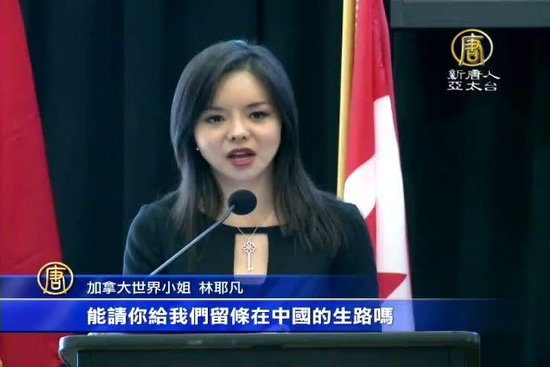 今年五月獲得「加拿大世界小姐」桂冠的華裔林耶凡,10月1日專程從加拿大,趕到加州州立大學聖馬克斯分校,出席關於中國人權的研討會,她與另外四名嘉賓一起,共同揭示了令人震驚的,中國社會真實現狀,並表示,參加選美活動,是想為更多的中國人發聲。 //asset2.ntdtv.com.tw/public/uploads/assets/2015/10/03/2015-10-03-560fcb2e1cb68.mp4 加拿大世界小姐|林耶凡|選美|人權|加拿大2015-10-03 20:30:56