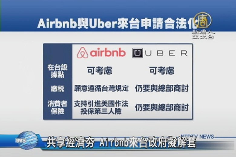 隨著網路、行動應用越來越普及,也帶動共享經濟熱潮,繼網路叫車平台業者Uber之後,住宿分享平台業者Airbnb,也向行政院透露,有意來台發展。Airbnb先前參與線上諮詢會議時,主動釋出善意,允諾繳稅、提供房客保險。 //asset2.ntdtv.com.tw/public/uploads/assets/2015/10/07/2015-10-07-561513ed9bbb9.mp4 airbnb|共享經濟|UBER|爭議2015-10-07 20:43:40