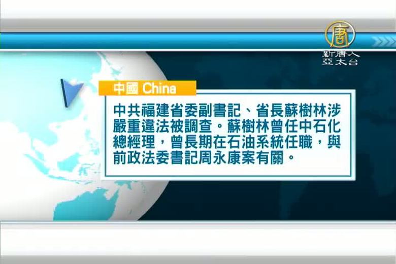 福建省長蘇樹林落馬,遭中紀委調查。蘇樹林曾長期在中國石油系統任職,並一直是周永康的下屬,外界也揣測,蘇樹林下台,是否會牽涉石油幫或台商。 //asset2.ntdtv.com.tw/public/uploads/assets/2015/10/08/2015-10-08-56166136d78c4.mp4 2015-10-08 20:23:36