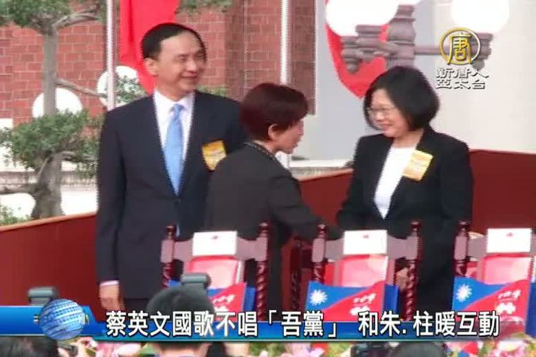 蔡英文國歌不唱「吾黨」 和朱.柱暖互動