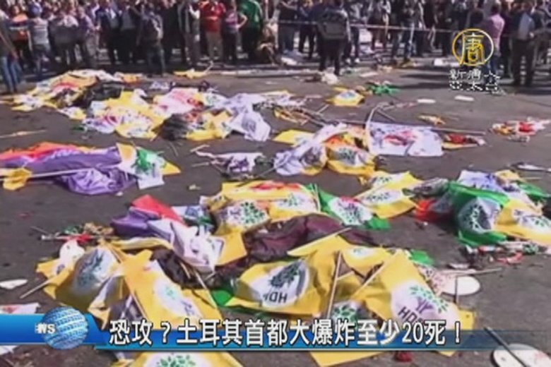 國際重大意外消息,土耳其首都安卡拉 主要車站附近,今天發生大爆炸,路透社表示,土耳其政府官員稱這是恐怖襲擊,調查說是自殺炸彈客發動的攻擊。 影片顯示,現場遍布屍體。攻擊目標似乎是一場正在進行的和平遊行。土耳其NTV電視台報導,救援團隊火速趕往現場。同個地點,原本要在今天稍後,舉行由左翼團體發起的反政府和平集會。 //asset2.ntdtv.com.tw/public/uploads/assets/2015/10/10/2015-10-10-561900c51cc20.mp4 2015-10-10 20:08:49