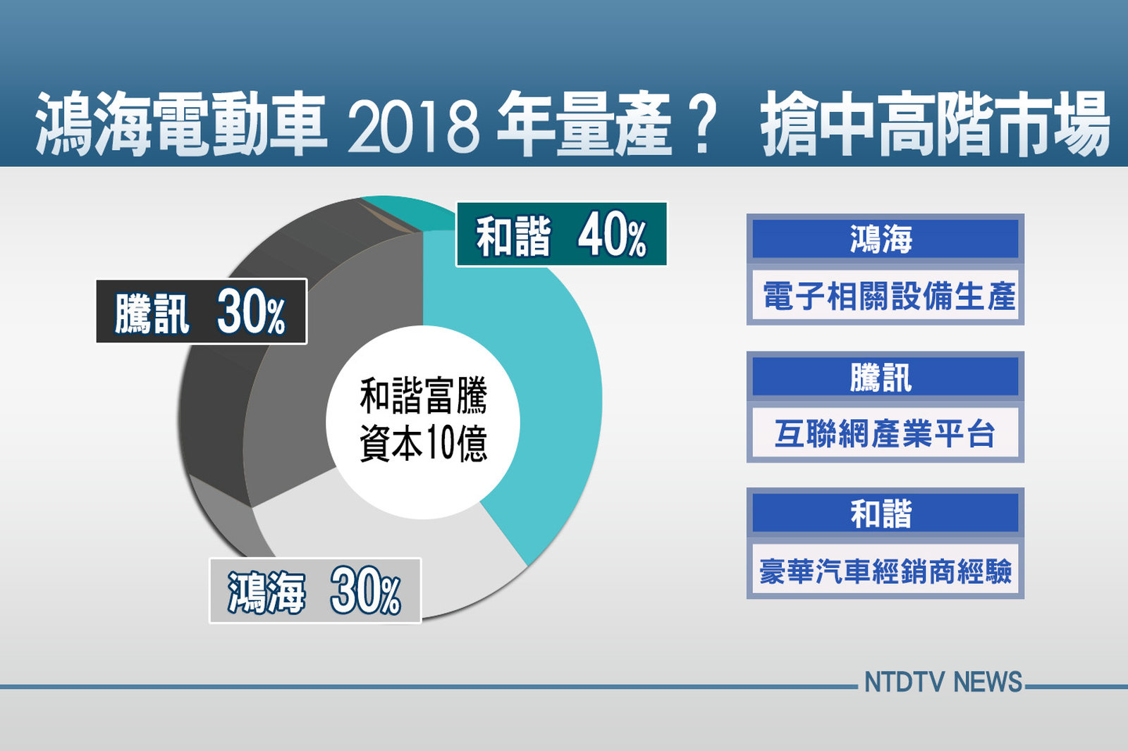 鴻海集團布局電動車市場進入衝刺階段,今年6月鴻海、騰訊及和諧汽車,共同宣布在鄭州成立合資公司「和諧富騰」後,有消息傳出,將在 2018年開始大量量產,並主攻中高階市場,以精品概念搶市。 //asset2.ntdtv.com.tw/public/uploads/assets/2015/10/26/2015-10-26-562e1cfca5fcd.mp4 鴻海|郭台銘|電動車|和諧富騰2015-10-27 03:26:26