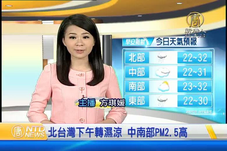 天氣灰濛濛,這是這一、兩天,全台空氣品質都很差,細懸浮微粒濃度(PM2.5)超標,北部地區紅色警戒,而整個中南部都是紫爆的危害等級,這兩天大陸鋒面南下,可望改善空氣品質,氣溫也會跟著下降,提醒大家早晚一定要多加件衣服。 //asset2.ntdtv.com.tw/public/uploads/assets/2015/11/09/2015-11-09-564095cd38d68.mp4 PM2.5|細懸浮微粒|紫爆|環境監測處|氣象局2015-11-09 20:41:44