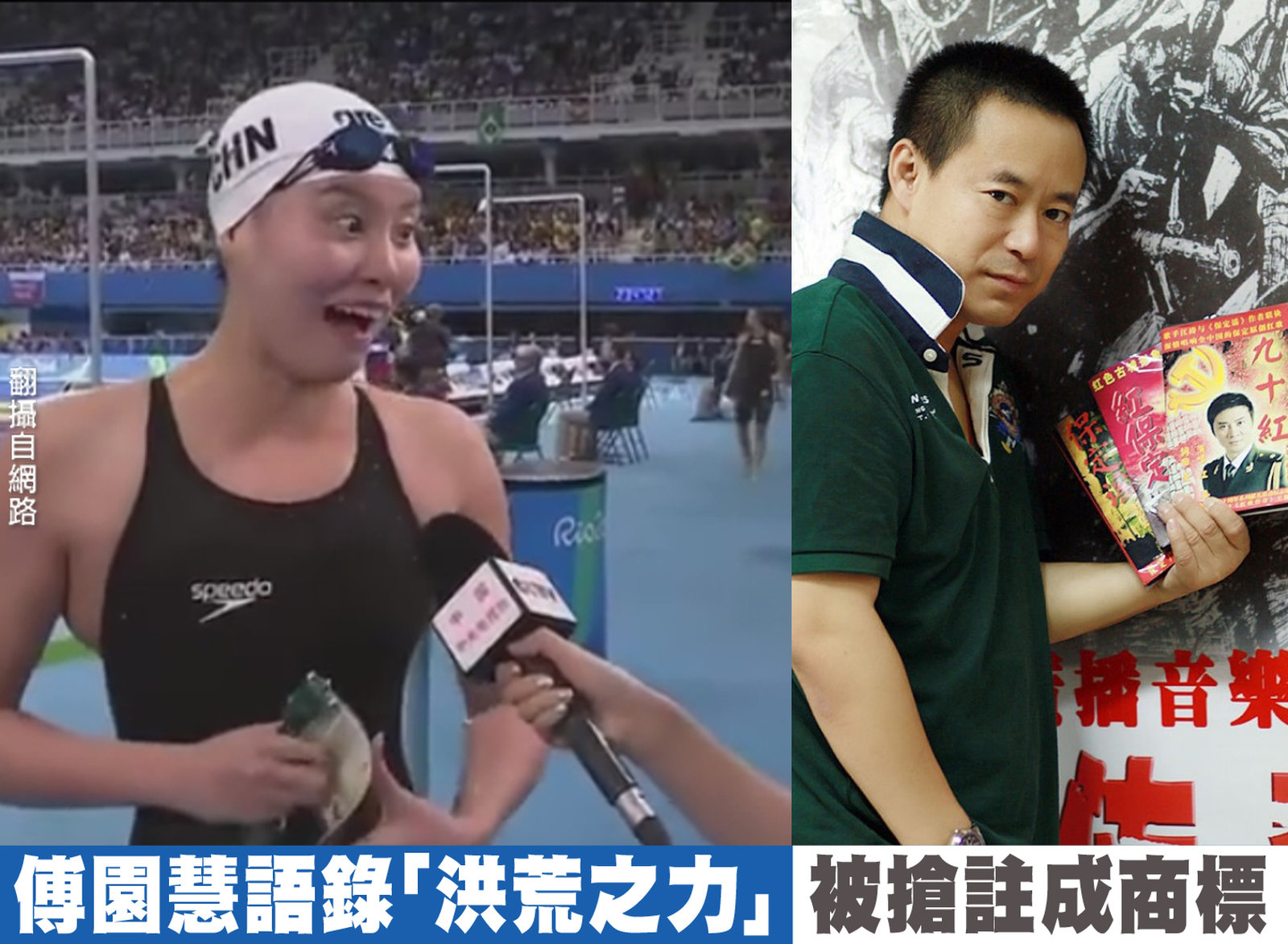 里約奧運期間,中國游泳女選手傅園慧受訪時的率真贏得大眾歡心,她一句「我已經用了洪荒之力」更在網路爆紅。河北保定音樂人 慶雨看準了商機,昨天只花4000元人民幣,便在國家商標總局將「洪荒之力」搶註成商標,預料「洪荒之力」的品牌,將涉及飲料食品、體育用品、影視音樂作品,有人覺得太有商業頭腦,但也有人批評,真是投機分子。 //asset2.ntdtv.com.tw/public/uploads/assets/2016/08/11/2016-08-11-57ac6fad4dcc0.mp4 2016-08-12 11:26:37