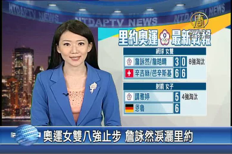 台灣網球在里約奧運的最後希望,詹詠然 詹皓晴,在雙打八強賽遭遇大會第5種子瑞士組合,辛吉絲跟巴辛斯基,雖然開賽 詹家姊妹先拿三局,不過接下來連丟12局,最後以直落二,在八強止步,賽後詹詠然接受媒體採訪時,談到為重返奧運舞台所做出的努力不禁哽咽。而在里約奧運射箭女子個人賽,譚雅婷 迎戰德國選手恩魯,在延射局,以5比6落敗,最後總成績名列第5。而羽球女單第8種子的戴資穎,昨天在預賽首戰 碰上奧地利伊莉莎白,只花27分鐘就以直落二勝出,開出紅盤。 //asset1.ntdtv.com.tw/public/uploads/assets/2016/08/12/2016-08-12-57adbdc1ec989.mp4 里約奧運|網球|詹詠然|譚雅婷|戴資穎2016-08-12 20:13:20