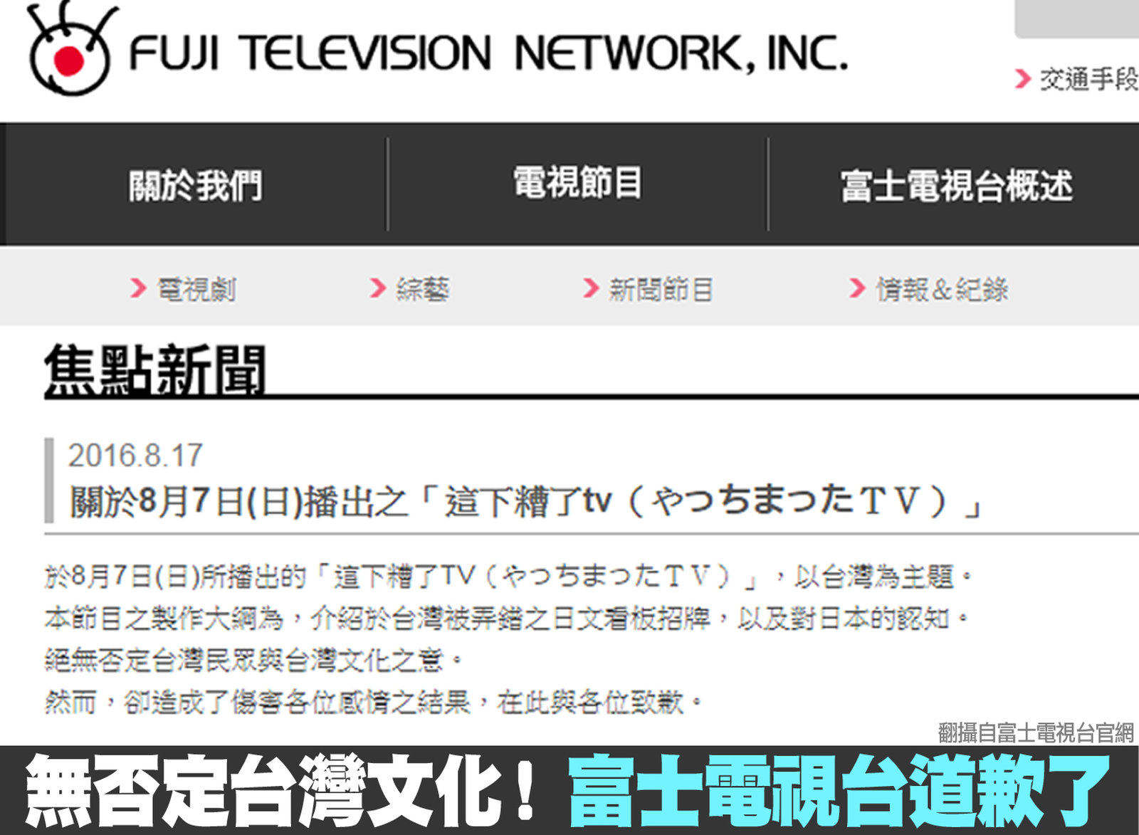 無否定台灣文化!富士電視台道歉了|台灣速速看