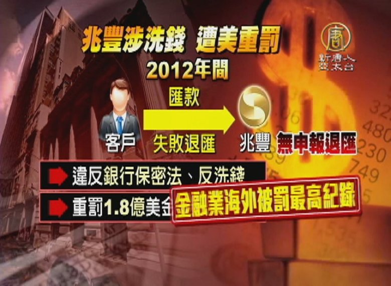 兆豐金旗下的兆豐銀紐約分行,驚傳疑似涉及洗錢,遭美方重罰57億台幣,昨天(8月19日)晚間10點半,兆豐金大動作召開記者會,澄清並沒有洗錢,只是因為紐約分行有應申報而未申報的事情,違反了《反洗錢法》,10天內要繳交完畢,這筆錢相當於紐約分行7年來的獲利,也創下台灣金融業在海外被罰的最高紀錄。 //asset2.ntdtv.com.tw/public/uploads/assets/2016/08/20/2016-08-20-57b853cd77c05.mp4 兆豐銀涉洗錢|兆豐|紐約分行|洗錢|重罰2016-08-24 15:55:04