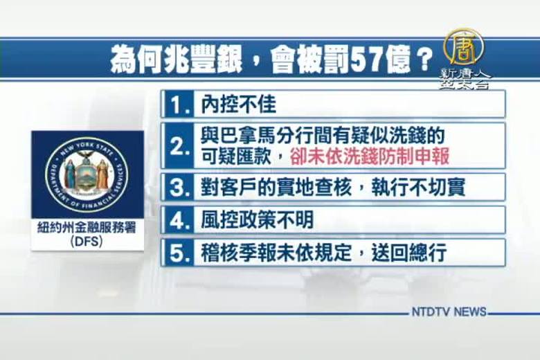 這起台灣金融史上最大的罰款案,折合台幣57 億的罰款與高額的顧問費,兆豐金全年獲利,將縮水兩成以上。兆豐銀到底冤不冤?又究竟犯了什麼錯?一分鐘,快速帶您來瞭解。 //asset2.ntdtv.com.tw/public/uploads/assets/2016/08/22/2016-08-22-57baec9cb6ed8.mp4 兆豐銀涉洗錢|兆豐|洗錢|紐約州金融服務署2016-08-24 15:48:49