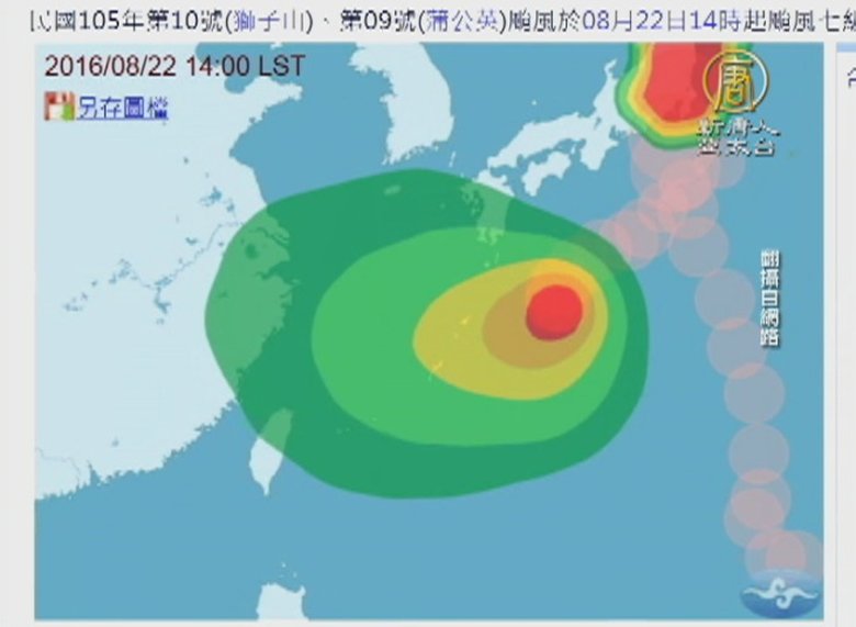 歡迎回來。今年第9號颱風「蒲公英」,已經在今天中午左右,從日本關東千葉縣館山市登陸,而這也是近11年來,首度有颱風從關東直接登陸,強風豪雨造成關東交通大亂, JR東日本宣布停開107班特快車,羽田機場也取消將近300班日本國內線。氣象局表示,「蒲公英」對台灣沒有影響,而至於另一個輕颱「獅子山」,未來路徑有可能朝琉球方向移動,有沒有可能影響台灣,要到星期三過後,才會比較明朗。 //asset1.ntdtv.com.tw/public/uploads/assets/2016/08/22/2016-08-22-57baeeebbc517.mp4 颱風|蒲公英|獅子山|日本|關東2016-08-22 20:23:10