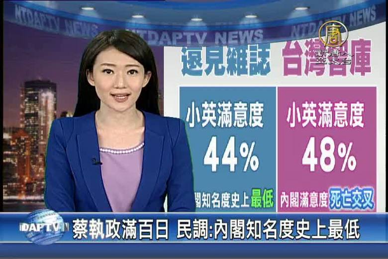 再來看到,蔡英文政府明天就要執政百日,針對當初獲得56.1%選票支持的蔡總統,今天有多個檢驗民調出爐,遠見雜誌調查,蔡英文目前滿意度為四成四,而內閣成員知名度只有8.3%,創下史上最低紀錄。民調顯示,最得人心的,是央行總裁彭淮南。由立委轉任文化部長的鄭麗君,以及由立委轉任環保署長的李應元。而滿意度最低閣員,則是國防部長馮世寬和交通部長賀陳旦,不滿意度都超過六成 。 //asset3.ntdtv.com.tw/public/uploads/assets/2016/08/26/2016-08-26-57c03211e06e2.mp4 蔡英文|內閣|民調|遠見民調|彭淮南|鄭麗君|李應元2016-08-26 20:09:59