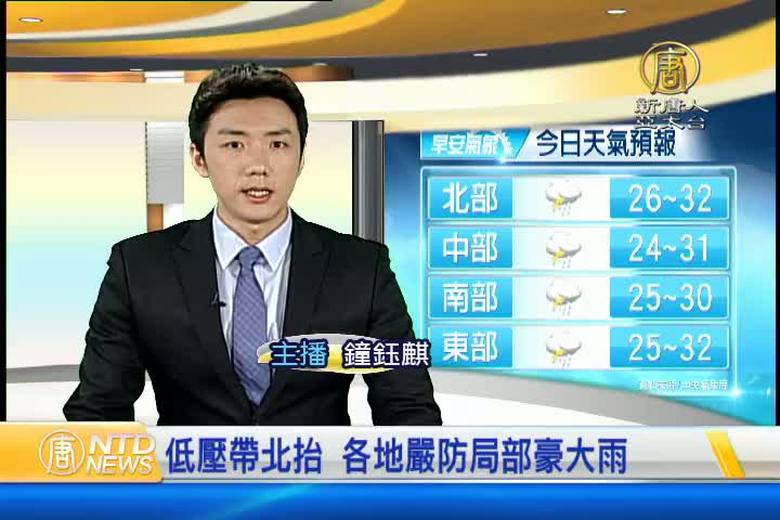 來關心天氣,由於對流雲系發展旺盛,氣象局今天傍晚將大雨特報提升為豪雨特報,台北市、新北市、基隆市都有局部大雨或豪雨發生機率,另外宜蘭縣、花蓮縣和嘉義以南等7個縣市,氣象局也發布大雨特報,請這些地區的民眾要注意雷擊與強陣風,低窪處也要防範淹水。 //asset3.ntdtv.com.tw/public/uploads/assets/2016/09/08/2016-09-08-57d158beb093e.mp4 豪雨特報|氣象預報|大雨|淹水2016-09-08 20:22:48