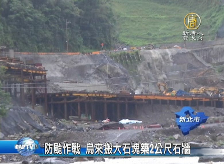 防颱作戰 烏來搬大石塊築2公尺石牆