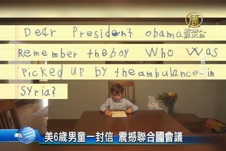 大家還記得幾個月前,在敘利亞,有一名從瓦礫堆當中被救出的五歲男孩達尼希嗎?一位住在美國紐約的六歲男孩,不僅記得達尼希,還親自寫了一封信給美國總統歐巴馬,希望邀請達尼希到美國,並給他一個家。 //asset1.ntdtv.com.tw/public/uploads/assets/2016/09/24/2016-09-24-57e5340c800f0.mp4 難民|六歲男童|白宮|歐巴馬|聯合國2016-09-23 21:41:31