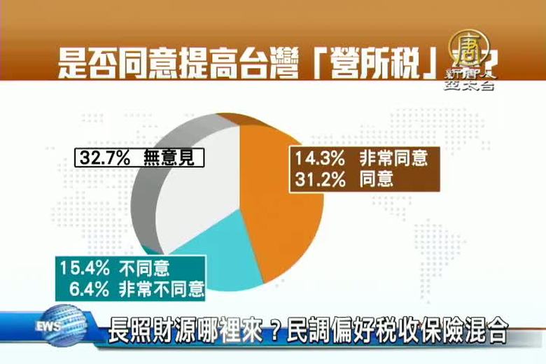 新政府推動長照2.0計畫,目前財源訂為稅收制,不過根據文教基金會所發布的一份民調,發現在青年族群中,支持長照保險制的比例 ,高於長照稅收制,而贊成稅收與保險混合制的民眾佔最多,達38.8%。 //asset1.ntdtv.com.tw/public/uploads/assets/2016/09/23/2016-09-23-57e52696c8f0f.mp4 長照|稅收制|保險制|營業稅|遺產稅|財源2016-09-23 20:54:02