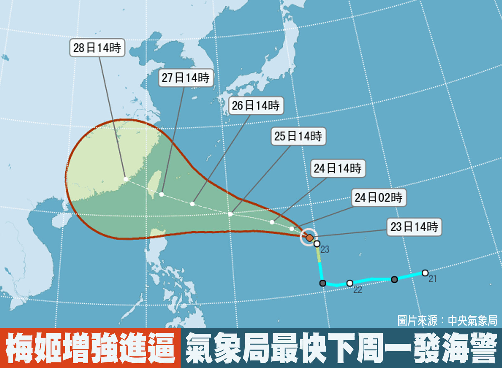 好,今天禮拜五,相信大家都很關心周末天氣。不過,又有颱風生成了。今年第17號颱風「梅姬」今天上午8時生成,中央氣象局預測,颱風將會朝台灣直撲而來,甚至不排除登陸台灣,預計最快周一外圍雲系影響台灣,周二周三對台灣影響最明顯。 //asset3.ntdtv.com.tw/public/uploads/assets/2016/09/23/2016-09-23-57e51c66a7155.mp4 梅姬颱風|氣象局|輕颱|東部登陸|吳德榮|台東2016-09-26 17:03:16