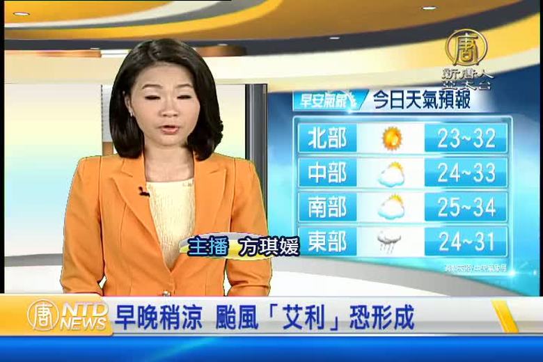 歡迎回來,今年的中秋連假,碰上颱風莫蘭蒂來攪局,馬上又是雙十國慶日假期了,不過根據氣象局表示, 位於菲律賓東方海面上的熱帶性低氣壓,有可能將發展成今年第19號颱風「艾利」。不過目前,它距離臺灣還有大約6千公里,對台灣影響的機率還要觀察,不管會不會形成颱風,周四、周五都將為台灣東半部和南部,帶來短暫雨,中南部則維持多雲到晴的好天氣。 //asset2.ntdtv.com.tw/public/uploads/assets/2016/10/04/2016-10-04-57f39f3056b50.mp4 熱帶性低氣壓|輕颱|雙十連假|艾利2016-10-04 21:01:56
