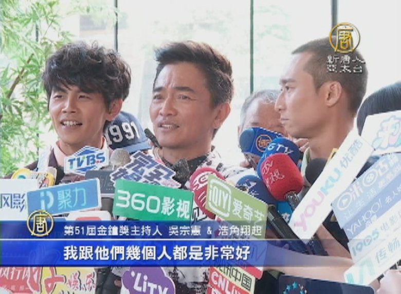 第51屆金鐘獎主持人吳宗憲和浩角翔起今天舉行定裝記者會,三人在記者會上大展幽默與默契,吳宗憲也主動提及與黃子佼的隔空交火,表示兩人都是老朋友了,黃子佼如果得獎,一定會給他一個擁抱。 //asset1.ntdtv.com.tw/public/uploads/assets/2016/10/04/2016-10-04-57f3a7919d7fe.mp4 金鐘獎|第51屆金鐘獎|吳宗憲|浩角翔起|黃子佼|小媳婦|團結2016-10-04 20:57:20