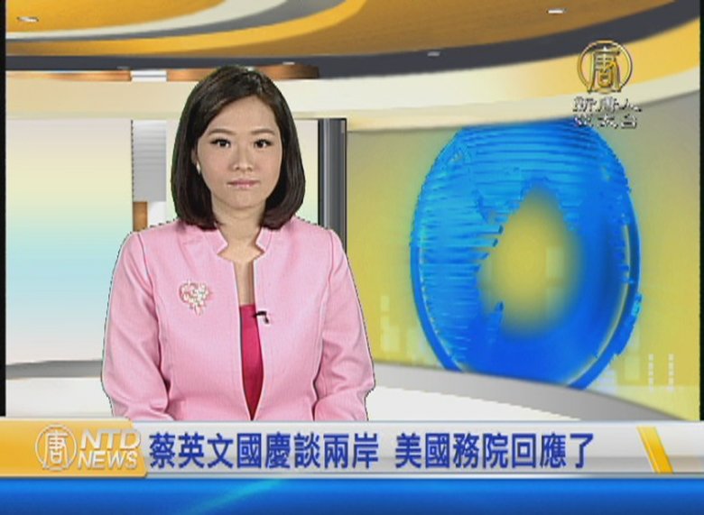 蔡英文總統發表國慶演說,呼籲中國當局,正視中華民國存在的事實;對此,美國國務院官員表示,美國歡迎台海兩岸採取步驟以降低緊張及改善兩岸關係,鼓勵北京和台北當局在尊嚴與尊重的基礎上,進行建設性對話;美國持續敦促雙方具彈性、耐心和創意,朝向持續和平與穩定的共同目標而努力。 //asset1.ntdtv.com.tw/public/uploads/assets/2016/10/11/2016-10-11-57fcd7a735406.mp4 雙十國慶|蔡英文|國慶演說|美國國務院|兩岸2016-10-11 20:12:07