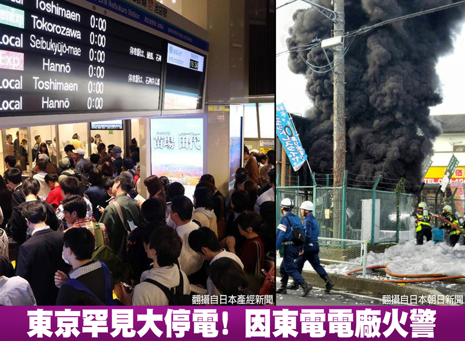 新聞頭條先帶您關心,日本東京電力公司位於東京市郊的一座設施,今天(12日)下午突然發生火警,導致東京都也罕見的大規模停電。 //asset2.ntdtv.com.tw/public/uploads/assets/2016/10/12/2016-10-12-57fe274c2c653.mp4 東電|電廠|東京|東京停電2016-10-12 20:05:20