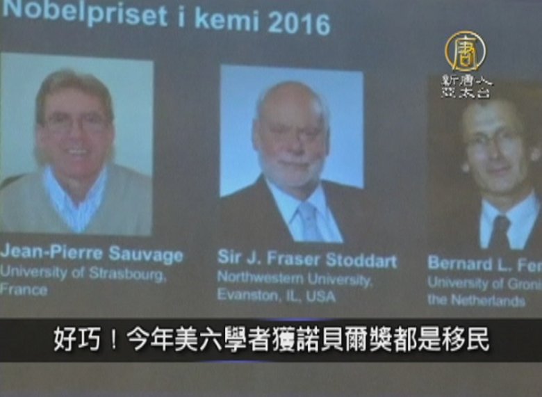 截至11日止, 2016年諾貝爾獎已頒發給六名美國學者,巧合的是,他們都是移民。拿下化學獎的斯托達特爵士來自蘇格蘭,三名物理獎得主和經濟學獎得主之一哈特博士都出生在英國,霍斯特羅姆則是芬蘭移民。 //asset1.ntdtv.com.tw/public/uploads/assets/2016/10/12/2016-10-12-57fe2fc78a95e.mp4 2016-10-12 21:42:03
