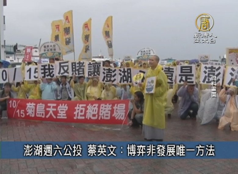 週六澎湖即將進行博弈公投,民進黨發言人王閔生在中常會後轉述黨主席兼任總統的蔡英文說,「澎湖有很好的天然資源,也有很好的機會可以發展觀光產業 ,政府會展現決心做的更多,讓澎湖人有信心,相信博弈絕對不是地方發展唯一的方法」。 //asset1.ntdtv.com.tw/public/uploads/assets/2016/10/12/2016-10-12-57fe38f2acb2f.mp4 2016-10-12 21:41:11