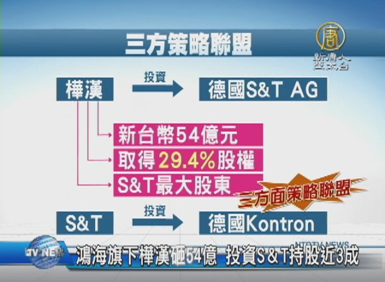 鴻海旗下樺漢砸54億 投資S&T持股近3成