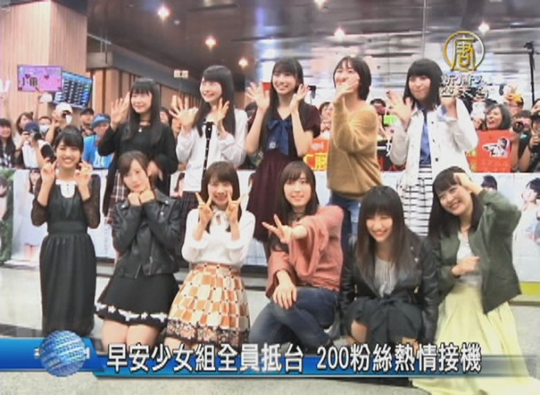 帶您看到,日本女團「早安少女組」睽違8年,再度來台開唱,今天中午抵達松山機場,11人全員到齊,現場超過200名粉絲,熱情接機。 //asset2.ntdtv.com.tw/public/uploads/assets/2016/10/15/2016-10-15-58022c40131a2.mp4 日本女團|早安少女組2016-10-15 21:16:55