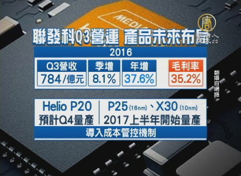 聯發科本周公布第三季財務狀況,營運上打入亞馬遜、三星一線品牌供應鏈,聯發科第3季毛利率止跌回穩,與第2季持平,稅後淨利季增 18.8%,創單季新高紀錄,而外界也關注,高通併購恩智浦後,是否對聯發科營收造成衝擊。 //asset1.ntdtv.com.tw/public/uploads/assets/2016/10/29/2016-10-29-5813529b04e4c.mp4 聯發科|蔡明介|謝清江|IC設計|半導體2016-10-28 21:18:10