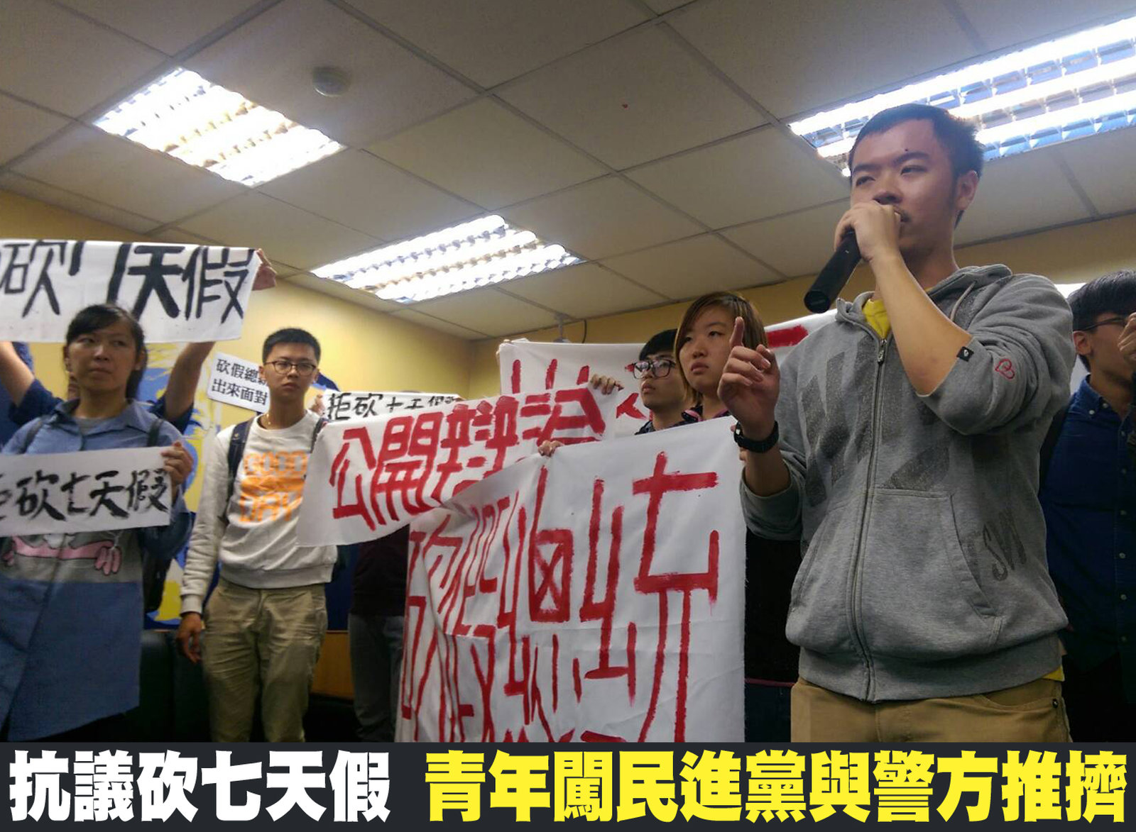 抗議砍七天假 青年闖民進黨與警方推擠