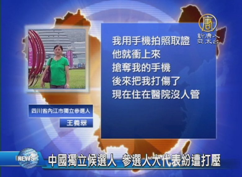 中共五年一屆的基層區、縣人大代表的選舉,目前在各地陸續進行中,北京、湖北、江西、四川等地,都曝出獨立候選人遭到打壓的情況,有的被打傷,有的被堵家中,或被恐嚇、被旅遊等。 //asset3.ntdtv.com.tw/public/uploads/assets/2016/11/05/2016-11-05-581ddde894da8.mp4 人大代表|選舉|獨立候選人|打壓|被恐嚇|被旅遊2016-11-05 21:21:28