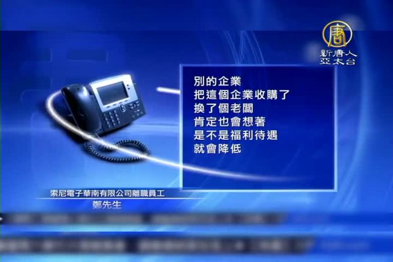 再來看到中國維權事件,位於廣東廣州的日本獨資索尼電子華南有限公司,被大陸民營企業歐菲光收購。由於擔心福利待遇降低,10號開始,索尼上千員工,憤而罷工。 //asset3.ntdtv.com.tw/public/uploads/assets/2016/11/12/2016-11-12-58271b8204691.mp4 廣州|索尼|歐菲光|收購|罷工|維權|補償2016-11-12 21:39:35