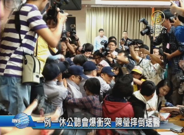一例一休公聽會爆衝突 陳瑩摔倒送醫