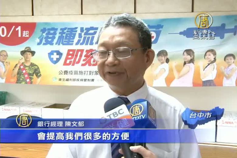 天氣忽冷忽熱,流感疫情有逐漸升溫的跡象,台中市有七十二萬劑公費流感疫苗,目前公費對象總接種率已達80%,台中市政府衛生局積極鼓勵公司行號揪團施打流感疫苗,提供免費定點服務。 //asset3.ntdtv.com.tw/public/uploads/assets/2016/11/18/2016-11-18-582f019a99df1.mp4 流感疫苗|揪團施打|衛生局|台灣銀行|台中2016-11-18 21:22:42