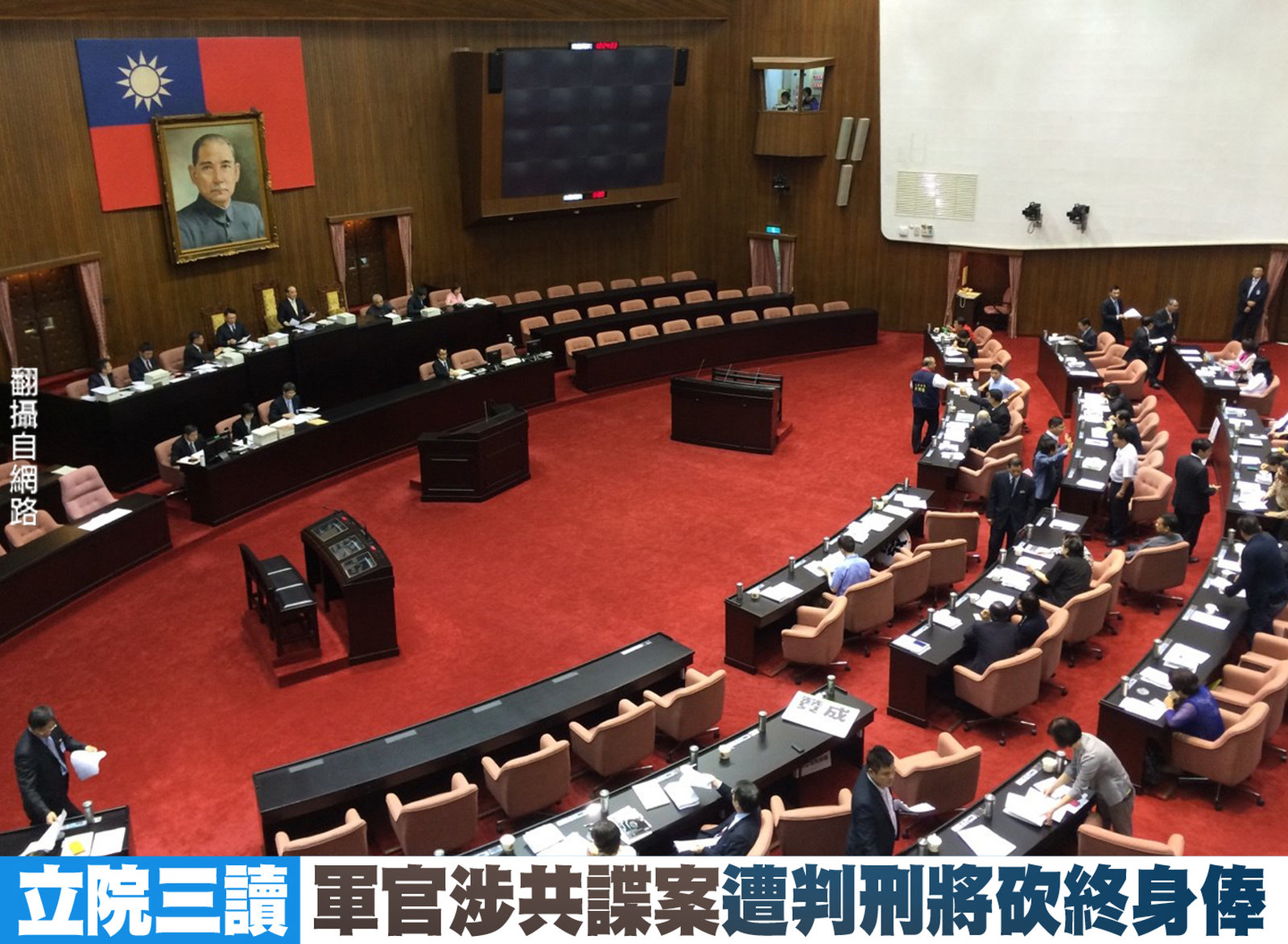 立院三讀 軍官涉共諜案遭判刑將砍終身俸