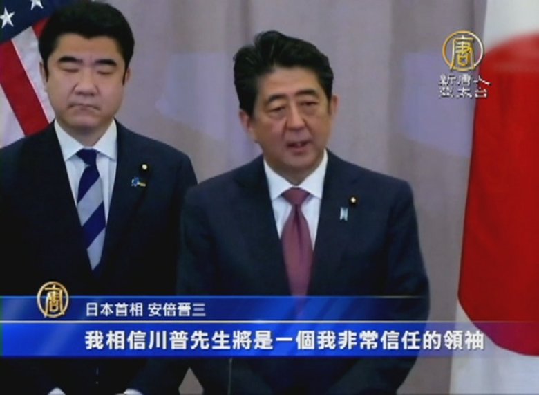 再來看到,美國總統當選人川普,台北時間今天上午會見日本首相安倍晉三;由於川普團隊先前就表示,這是場非正式的會晤,要尊重現任總統歐巴馬擁有的外交事務職權,因此見面地點選在紐約川普大樓,全程約90分鐘。大批媒體湧入,會後川普沒有面對媒體,安倍晉三說,經過這次會談後,他覺得川普是值得信任的人。 //asset3.ntdtv.com.tw/public/uploads/assets/2016/11/18/2016-11-18-582ef0076519c.mp4 2016-11-18 21:05:10
