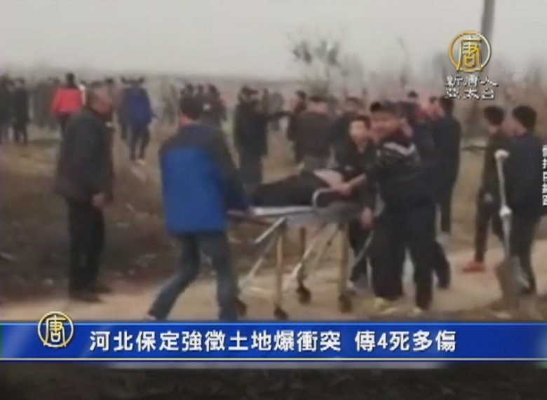 中國河北保定,爆發房地產開發商強佔土地事件,11月16號,上百村民阻止施工方動工,雙方爆發衝突,傳出有4名村民被撞死,10多名村民受傷。 //asset1.ntdtv.com.tw/public/uploads/assets/2016/11/19/2016-11-19-5830467f9a0e4.mp4 強佔土地|河北|保定|抗議|鬥毆2016-11-19 20:30:10