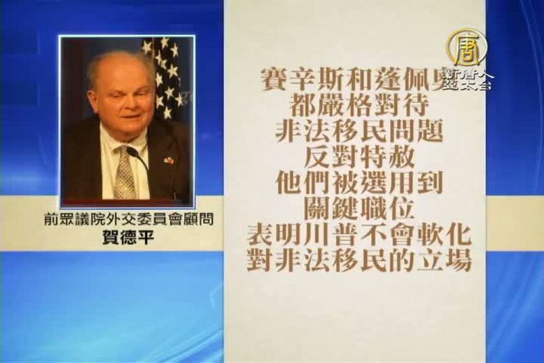 再來關心,昨天,美國候任總統川普,公布了三名新任命的內閣成員,他們被一些美國媒體認為是立場強硬的右翼人士,可能有利於川普上任後推動相關政策。而截至目前,川普內閣,總計有5個重要崗位的人選,已經確認。 //asset3.ntdtv.com.tw/public/uploads/assets/2016/11/19/2016-11-19-583051cb3bbe8.mp4 川普|內閣成員|美國大選2016-11-19 21:21:21
