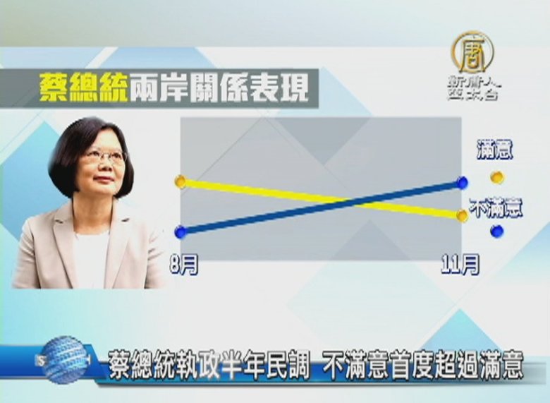 好,許多的爭議性議題,是否已經影響到總統蔡英文的滿意度?台灣民意基金會,發布蔡政府執政滿半年民調,滿意度 41.1%,首度低於不贊同的42.6%,呈現死亡交叉。 //asset3.ntdtv.com.tw/public/uploads/assets/2016/11/28/2016-11-28-583c2261c8c06.mp4 施政滿意度|民調|台灣民意基金會|林全內閣|游盈隆|蔡政府|蔡英文|同性婚姻合法化2016-11-28 20:21:50