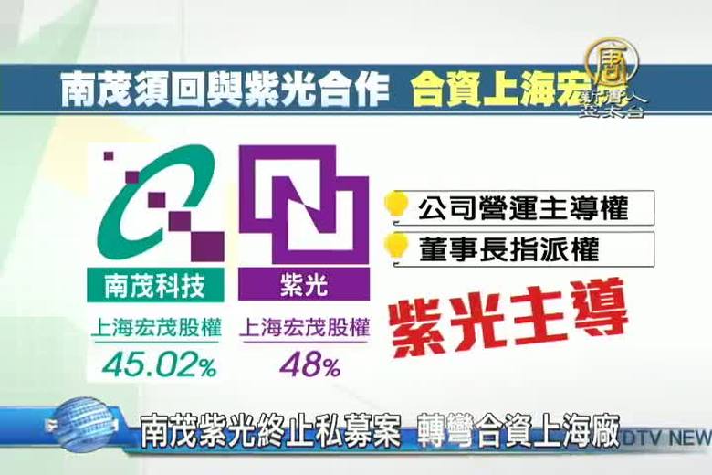 南茂科技,去年規劃由中國紫光集團私募入股25%股權,但因主管機關尚未批准申請,南茂今天宣布,先出售上海宏茂部份股權,並在拿到資金後,與紫光集團共同增資上海宏茂廠。不過,投審會也隨後召開記者會表示,後續對大陸資增的部分,還是得過投審會這關,才能放行。 //asset1.ntdtv.com.tw/public/uploads/assets/2016/11/30/2016-11-30-583ed60dc9f6f.mp4 南茂|紫光|封測|力成2016-11-30 21:37:24