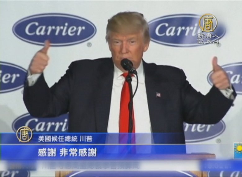 美國總統當選人川普展開謝票之旅,首先他探訪了美國空調大廠開利,並與工人互動打氣;因為川普成功勸說開利,將超過1000個工作崗位留在美國,而不是遷往墨西哥。 //asset2.ntdtv.com.tw/public/uploads/assets/2016/12/02/2016-12-02-58416d56ee464.mp4 川普|美國製造|印第安納|墨西哥2016-12-02 20:44:26