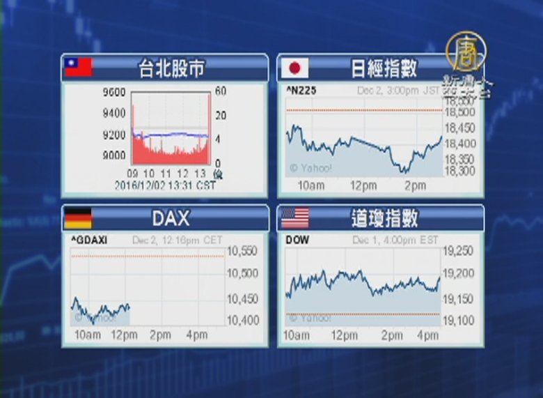 外傳蘋果電腦減少對iPhone7零組件下單,美國科技股指數連續兩天拉回,連帶影響 今天台灣的電子股同步大跌,拖累大盤走弱, 終場收跌74.04點,不僅跌破5日線,更跌破9,200點大關,收在9189.49點,跌幅約0.8%,成交值新台幣747.34億元;。 另外,來看到,美元再度走強,亞幣回貶,新台幣今天以31.923元兌1美元作收,貶值3.1分,匯價連4貶 並創下近一週來新低。 //asset2.ntdtv.com.tw/public/uploads/assets/2016/12/02/2016-12-02-58417476a0693.mp4 台股|下跌|新台幣|美元|匯價|連4貶2016-12-02 21:17:47