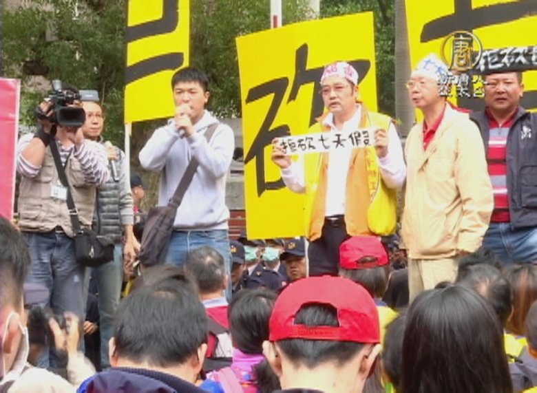 新聞一開始,首先來看到今天的立法院,有關刪除7天假和一例一休的《勞基法》修正草案今天排入院會議程,但上午先是發生勞團抗議、民進黨立院黨團總召柯建銘被抗議人士毆打,下午國民黨團又陸續佔領主席台和發言台,會議暫停,召開朝野協商再度破局。立法院長蘇嘉全只好宣布,12月6日早上再開會討論。 //asset3.ntdtv.com.tw/public/uploads/assets/2016/12/02/2016-12-02-5841651853e39.mp4 勞基法修正案|一例一休|刪7天假2016-12-02 20:07:31