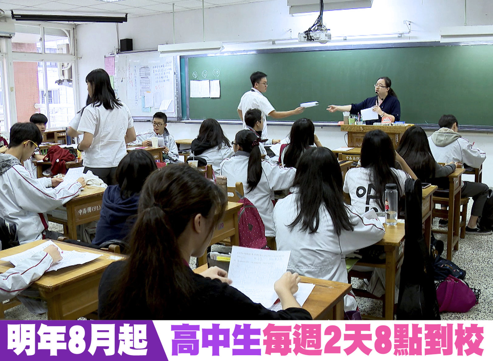 未來高中生可以睡晚一點點了,教育部宣布,106學年度起,高中生每週至少2天最晚8點子再到校。現在就交由各縣市高中職,擬定方案。不少學生聽了拍手叫好,但也有校長擔心制度不明會造成困擾。 //asset2.ntdtv.com.tw/public/uploads/assets/2016/12/02/2016-12-02-58417934297e1.mp4 高中生|8點到校|柯文哲|教育部2016-12-02 21:36:09