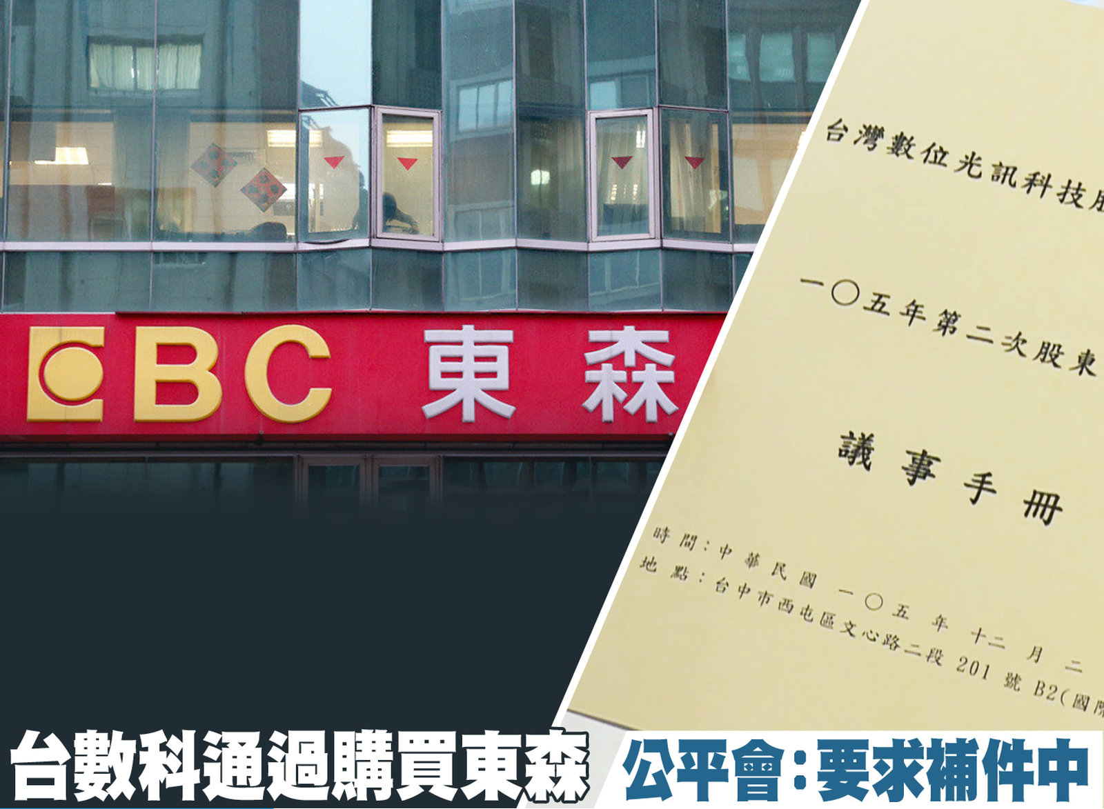 歡迎回來。台灣第四大系統商 台數科,今天(2)上午舉行股東臨時會,並且通過台數科將透過子公司鑫隆,間接買進東森股權,總金額達到111.24億元,未來將持股東森電視65%。對此,主管機關公平會表示,文件不齊全,要求補件中。NCC則說,還沒進入實質審查,會納入反媒體壟斷精神考量。 //asset1.ntdtv.com.tw/public/uploads/assets/2016/12/02/2016-12-02-58416fa411d49.mp4 台數科|廖紫岑|東森電視|反媒體壟斷|台中2016-12-02 20:54:57