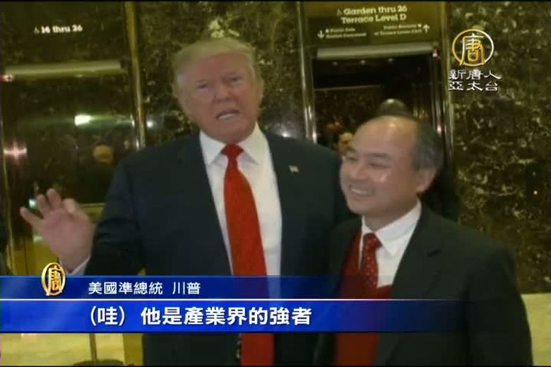 美國候任總統川普,週二與日本軟銀集團社長孫正義見面,兩人談了約45分鐘,孫正義向川普祝賀,並送上大禮。他承諾4年內將投資美國新創企業等約500億美元,創造5萬個就業機會。 //asset1.ntdtv.com.tw/public/uploads/assets/2016/12/07/2016-12-07-58480c494e039.mp4 軟銀|川普|孫正義|日本2016-12-14 11:37:28